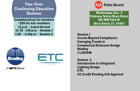 What Members Need To KnowView the ARE 5.0 Lecture Series Project Planning & Design (AIA Palm Beach, 1/31/2025) After twenty months of declines, architecture firm billings were flat in October (AIA, 11/24/2024) Florida Licensee CE Renewal (AIA Florida, 10/6/2024) |